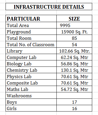 Details of Infrastructure: