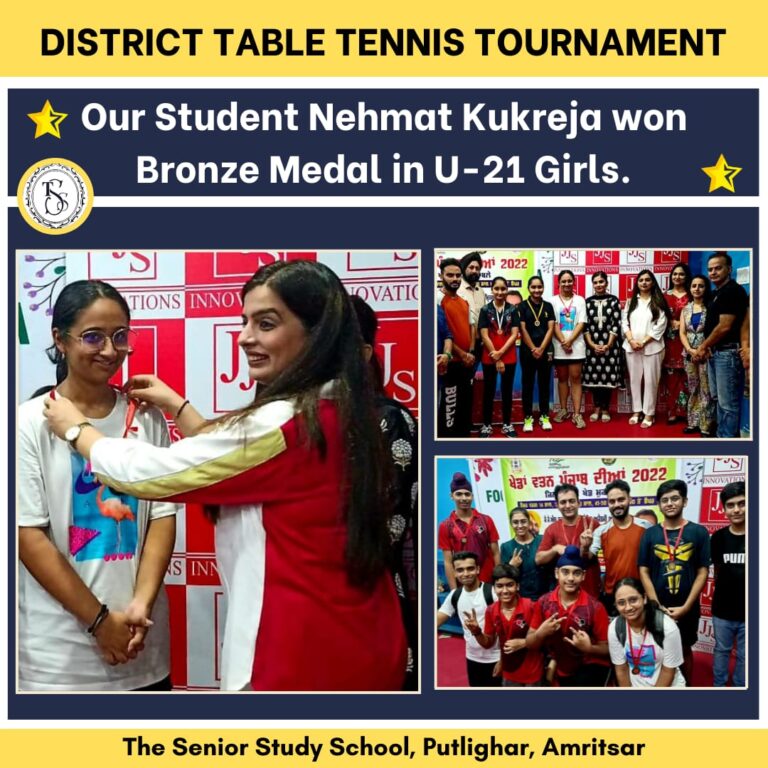 Categories Achievers District Table Tennis Tournament – Nehmat Kukreja Won Bronze Medal Post author By admindev Post date October 15, 2022 No Comments on District Table Tennis Tournament – Nehmat Kukreja Won Bronze Medal