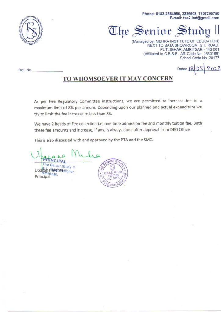 Fee Details as per section (2.4.9)